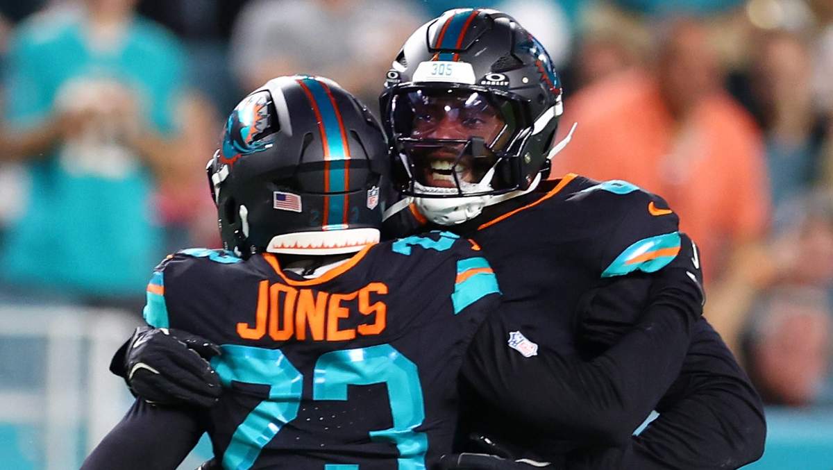 Jones forced the fumble at the Dolphins‘ 4-yard line in the first quarter, and the Dolphins turned around on offense and went 96 yards in 15 plays to go up 10-0. Dolphins quarterback Tua Tagovailoa capped the drive with a 4-yard touchdown to tight end Darren Waller.
