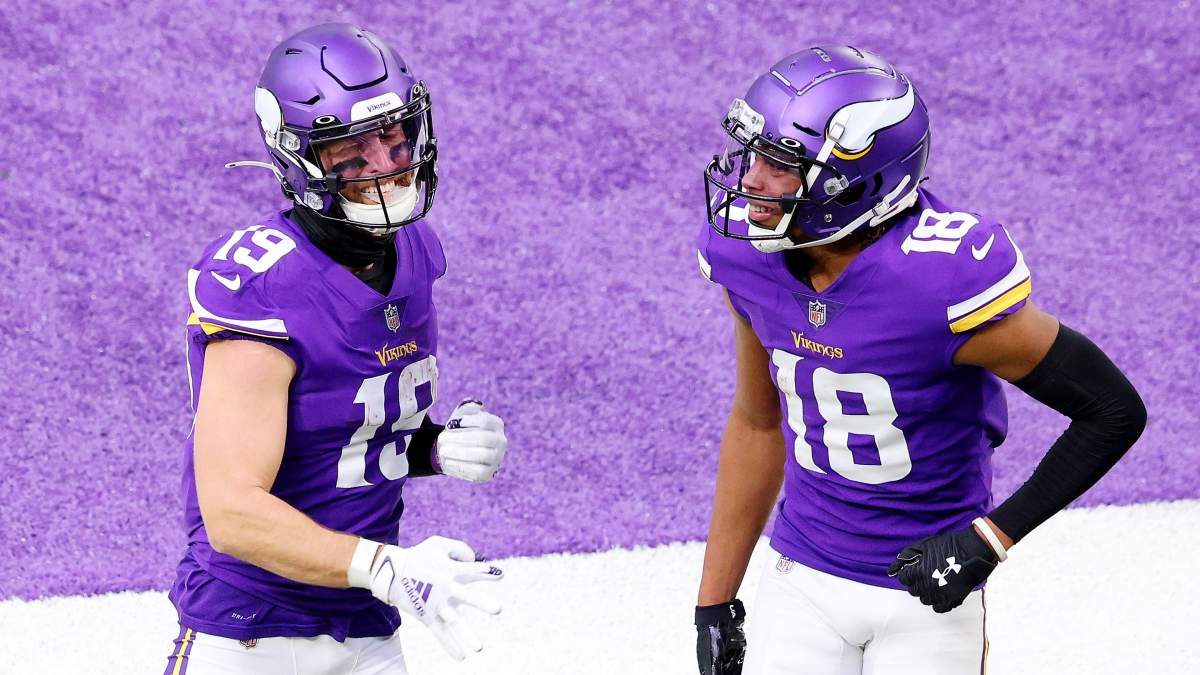 Fourth-round rookie speedster Ihmir Smith-Marsette also emerged late in the season, scoring two touchdowns and catching four of five targets for 110 yards in the Vikings’ final three games.