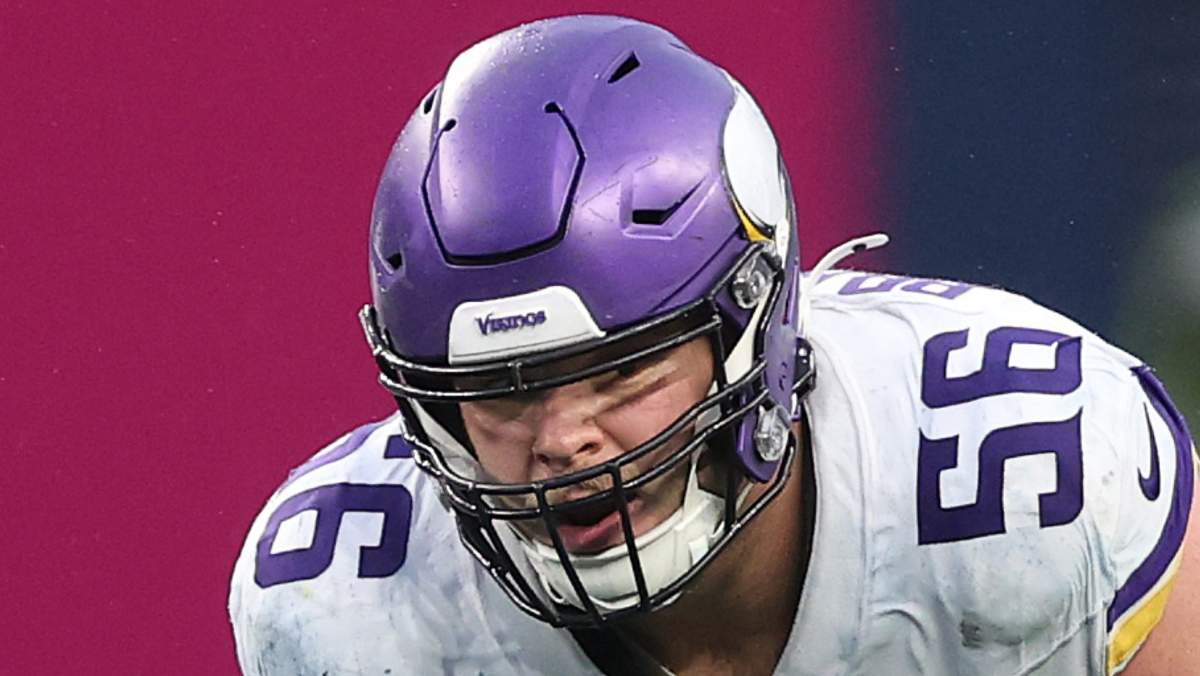 GettyGarrett Bradbury #56 of the Minnesota Vikings prepares to snap the ball against the Los Angeles Rams during the NFC Wild Card Playoff.