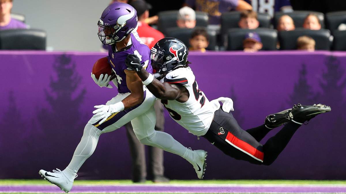 The Minnesota Vikings‘ receiving corps looked to take a blow when new free agent acquisition, wideout Rondale Moore, went down after big hit during Saturday’s pre-season game against the Houston Texans.