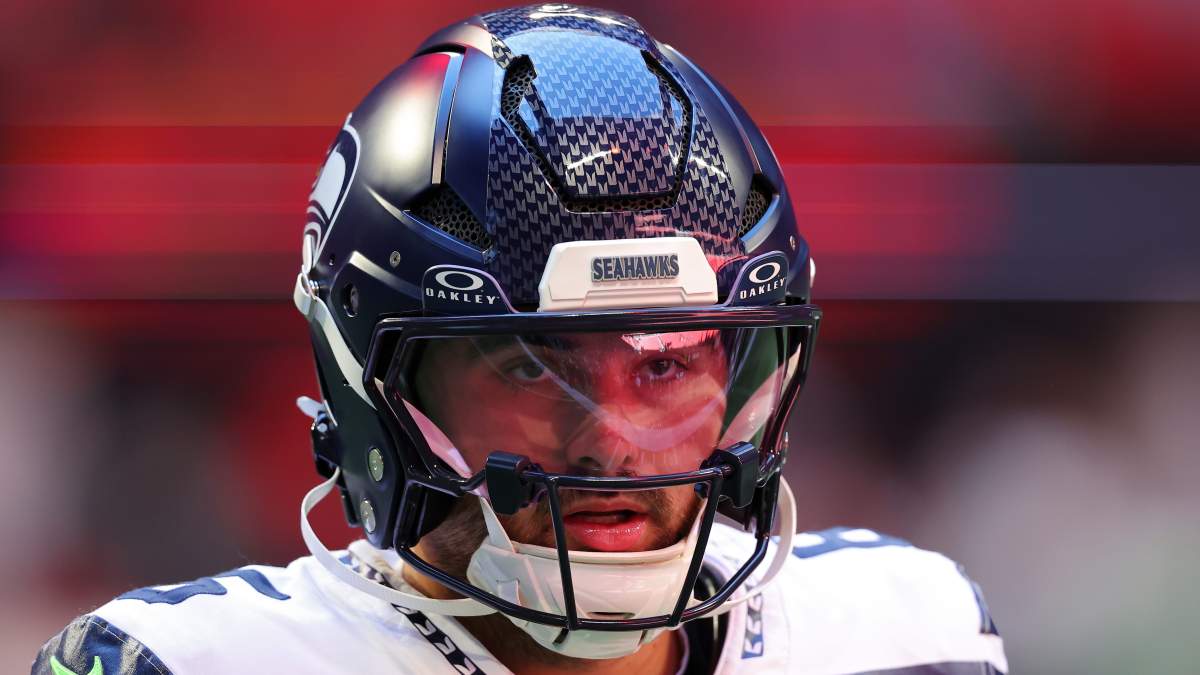 GettySam Howell #6 of the Seattle Seahawks warms up before a game against the Atlanta Falcons.