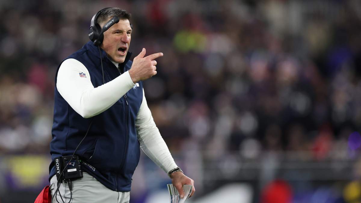GettyPatriots head coach Mike Vrabel and RB TreVeyon Henderson