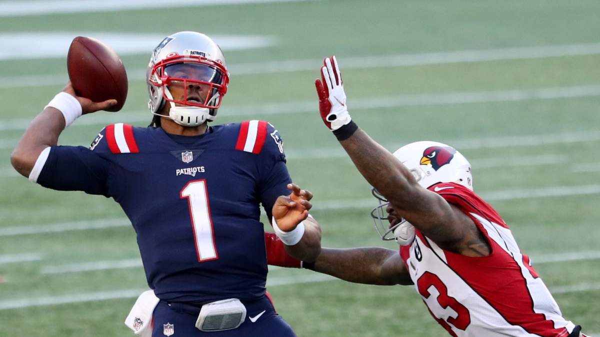 Newton was sacked three times and hit on four other occasions on Sunday by the Cardinals’ defense. In fact, he was hit by a blitzing Jordan Hicks on his very first passing attempt. The blitz pickup was missed by running back James White, which caused the pressure and contact, and subsequently led to an interception.