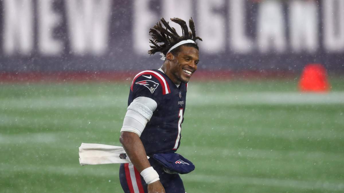 Cam Newton draws a ton of attention on the field and off. He was beaming on Sunday night after he helped the New England Patriots secure a 23-17 win over the Baltimore Ravens. Newton unleashed an epic celebration in the rain after the win, and as usual, his attire at the post-game presser drew eyeballs.