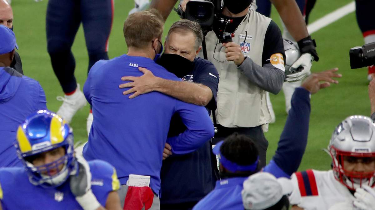 After the game, during the customary embrace between the head coaches, Patriots legend Bill Belichick had a nice word for Rams head coach Sean McVay.