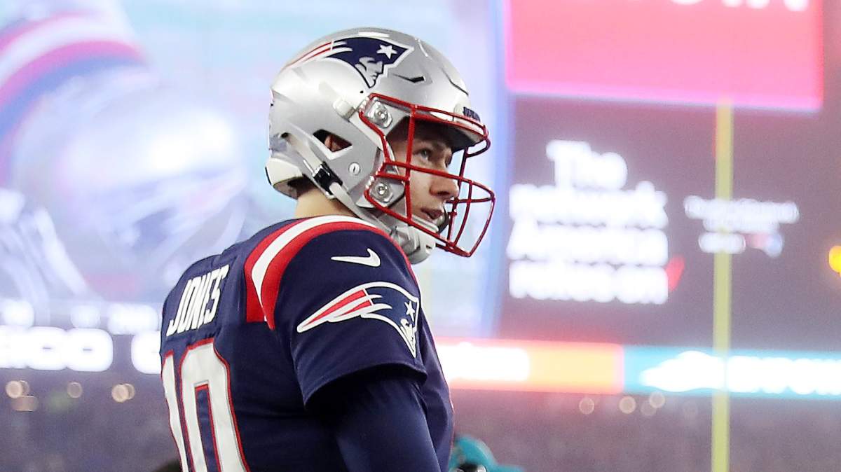 The second-year pro was pulled after three offensive series. The last one culminated when Jones was picked off by Bears rookie safety Jaquan Brisker. Jones was pulled from the game in favor of rookie quarterback Bailey Zappe, and the former never returned to the contest.