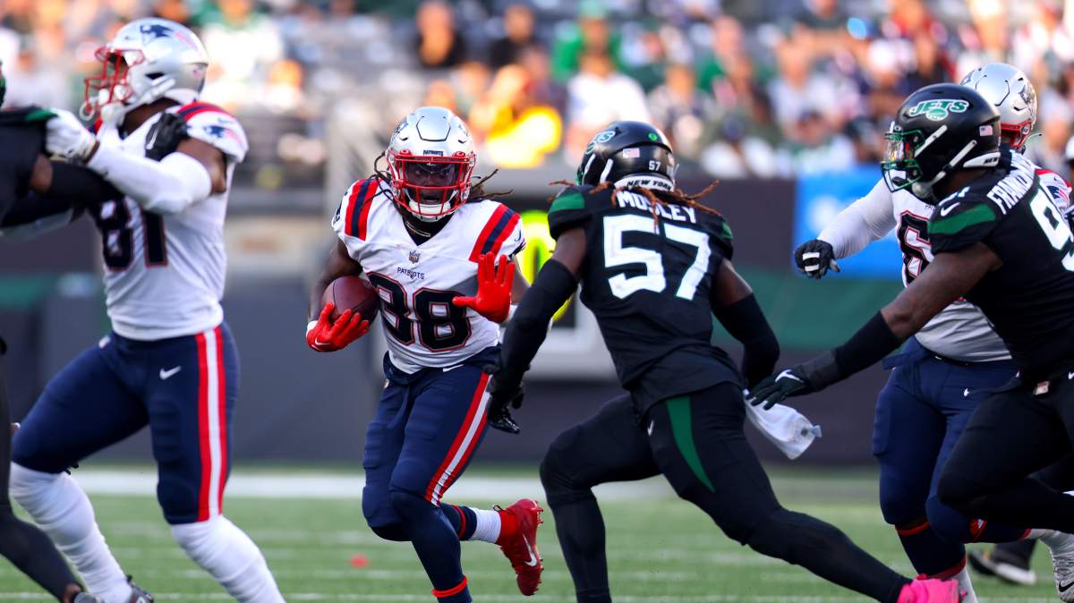“The second-year back was stuck in a timeshare with Damien Harris in the first four weeks of the season,” wrote Ballentine. “He played in 62 percent or fewer of the snaps in every game as the Patriots got off to a 1-3 start. Since then, he’s played at least 77 percent of the snaps, is now seventh in total scrimmage yards and the Patriots have won three out of their last four games. His ability to break off big runs even when the blocking in front of him is suboptimal is one of the few things the Patriots offense has going for it right now. He was responsible for 143 of the unit’s 288 yards against the Jets in Week 8.