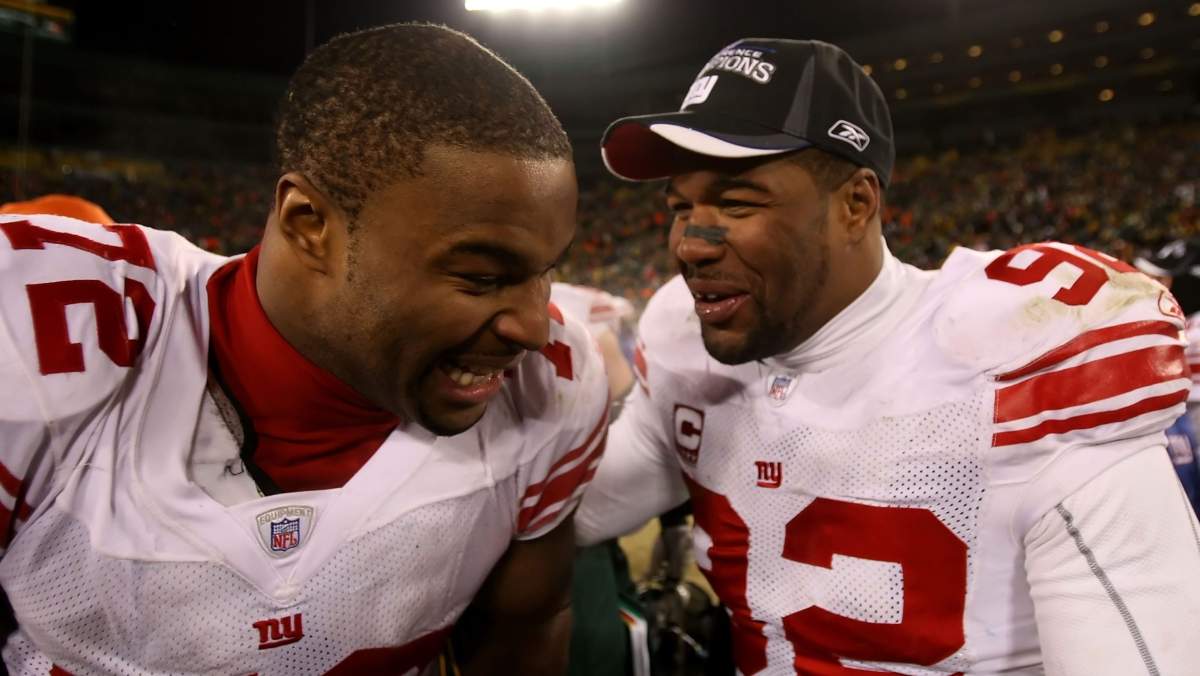 Former Giants defensive end Michael Strahan used to tease Umenyiora for his affinity for the strip sack.