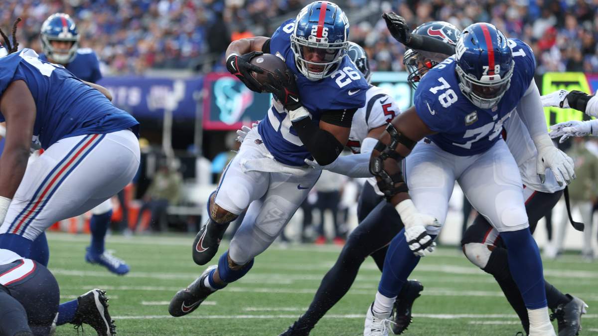 Aside from left tackle Andrew Thomas, Barkley is the only elite member of a solid, but plodding offense. His importance was underscored by a career-high workload against the Texans that saw No. 26 carry the ball 35 times for 152 yards and a touchdown.