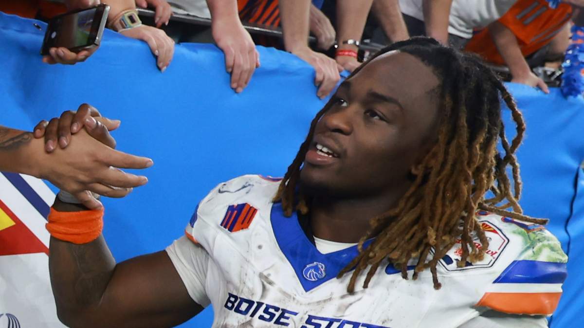 Jeanty was a Heisman finalist this year after his record-breaking season for Boise State. He finished with 2,601 rushing yards, 29 rushing touchdowns, and he averaged seven yards per rushing attempt.