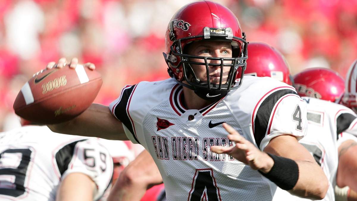Mougey played his college ball at San Diego State. The first two years there were at the QB position and the final two years were at wide receiver.