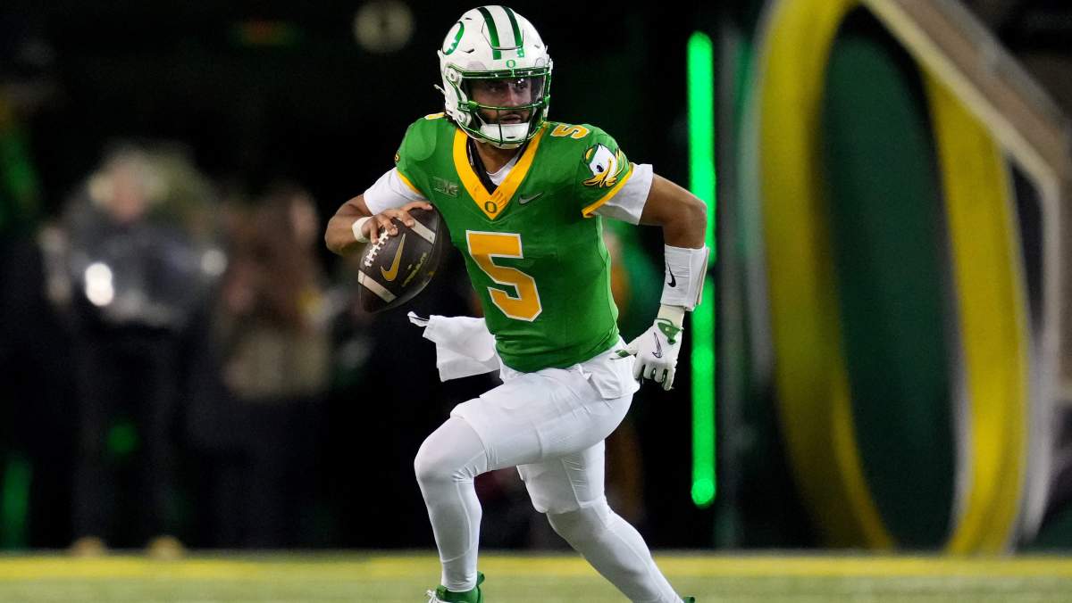 Oregon quarterback Dante Moore left the New York Jets at the altar.