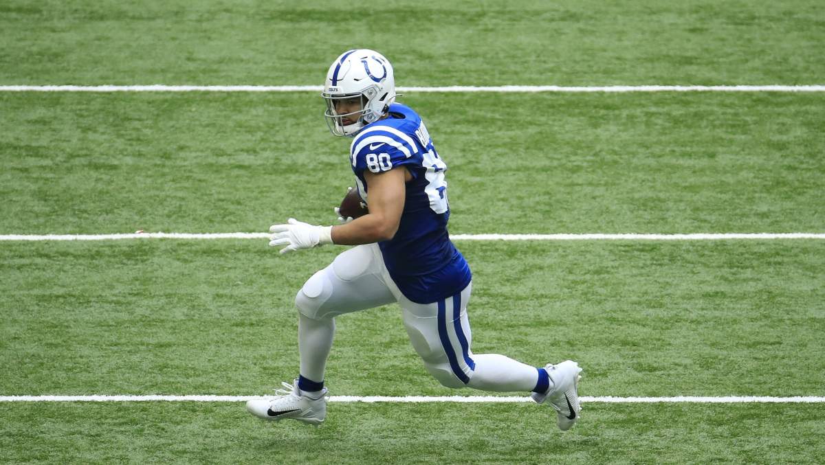 Here is Burton on a touchdown with the Indianapolis Colts in 2020.