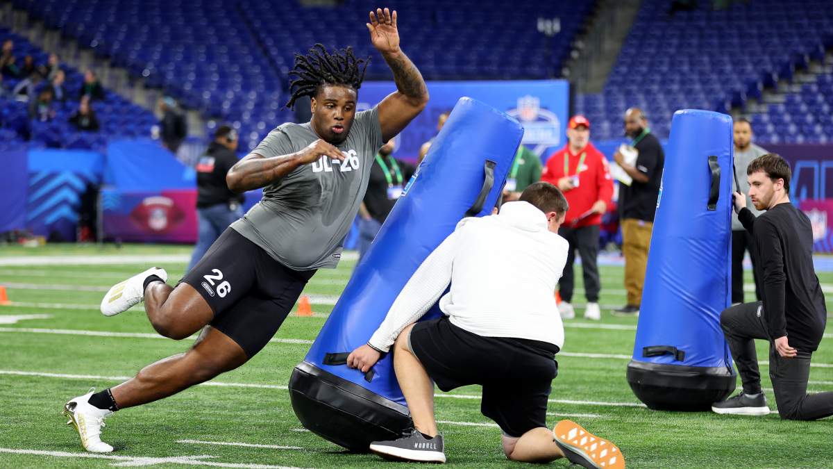 Brugler described Taylor as possessing a “picturesque frame with long arms and room for additional mass. Flashes juice in [his] lower body with an explosive get-off.”