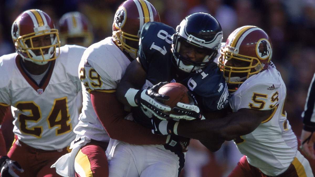 Prior to that, Johnson had a stellar two-year run in Philly where he was viewed as a “mentor” to a rookie quarterback named Donovan McNabb. He had 90 receptions for 1,056 and 8 touchdowns in 27 starts for the Eagles; in addition, Johnson left the league with 354 career catches for 4,606 yards and 24 touchdowns. He was a first-round pick of the Steelers who selected him at No. 17 overall in 1994.
