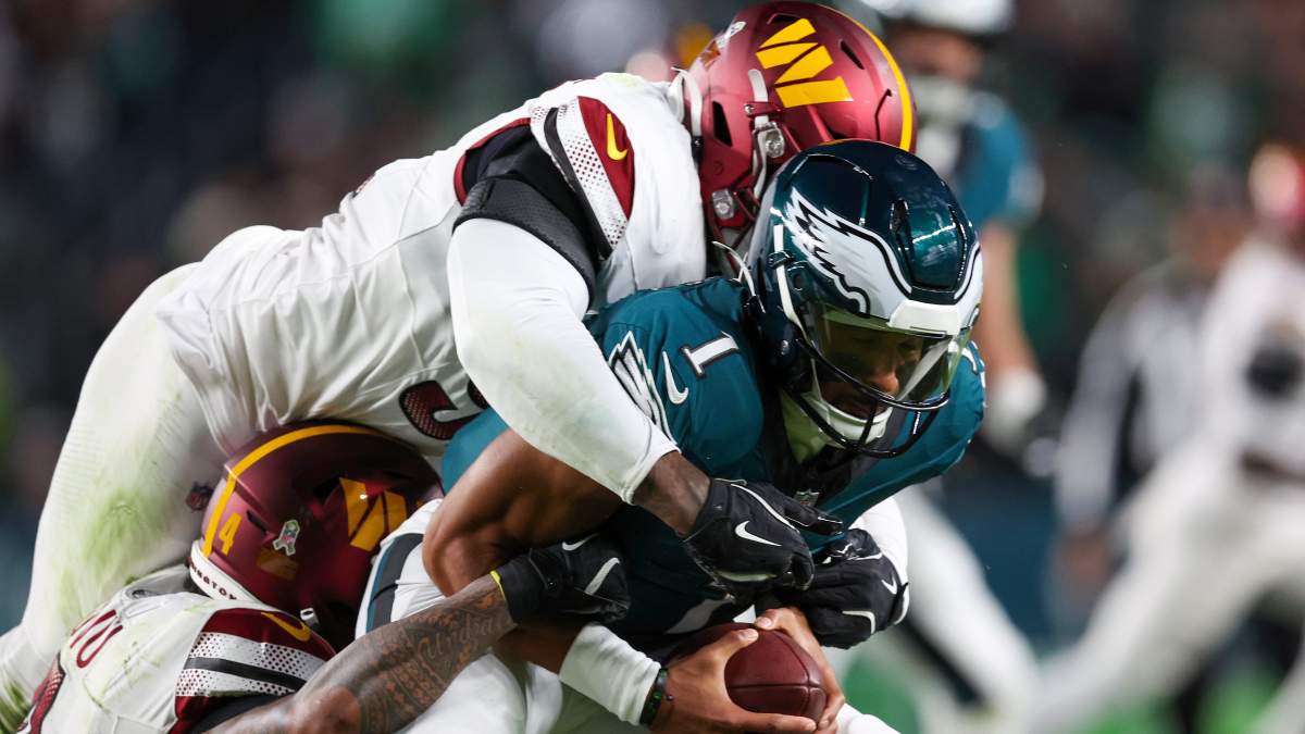 That player would be quarterback Jalen Hurts, who was the subject of a scary injury report from Thursday Night Football sideline reporter Kaylee Hartung right before halftime against the Washington Commanders in Week 11.