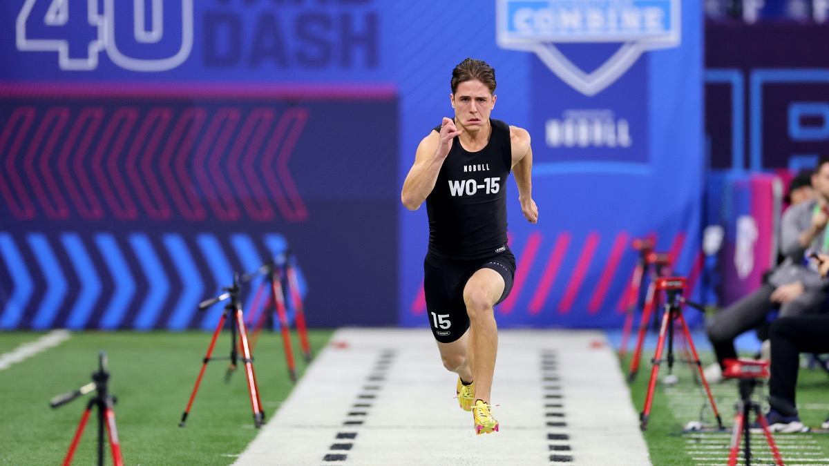 “You listed one of them earlier, Luke McCaffrey from Rice. The son of Ed McCaffrey and brother of Christian McCaffrey, Luke is a big, explosive X-receiver with some pretty great athleticism. He ran a 6.70 3-cone with a 4.02 short shuttle, showing great agility to go along with a 4.46 40.