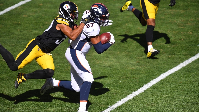 Hilton’s 15-yard penalty was especially costly, as Denver scored a touchdown on its next play, a 20-yard pass from Driskel to Fant, which helped Denver cut Pittsburgh’s lead to 17-14 (following a successful two-point conversion).
