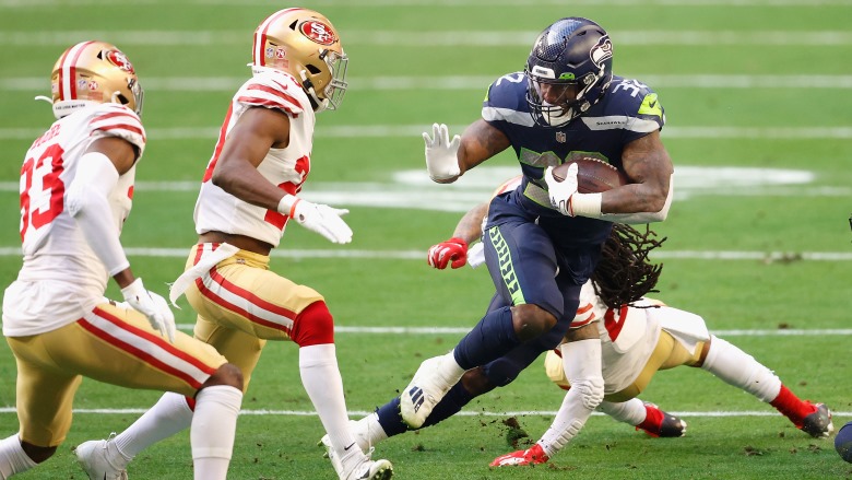 That said, “few players have run the ball consistently harder than Chris Carson since he entered the NFL, averaging 3.3 yards per carry after contact and breaking 147 tackles on 744 carries over his NFL career,” offers Monson.
