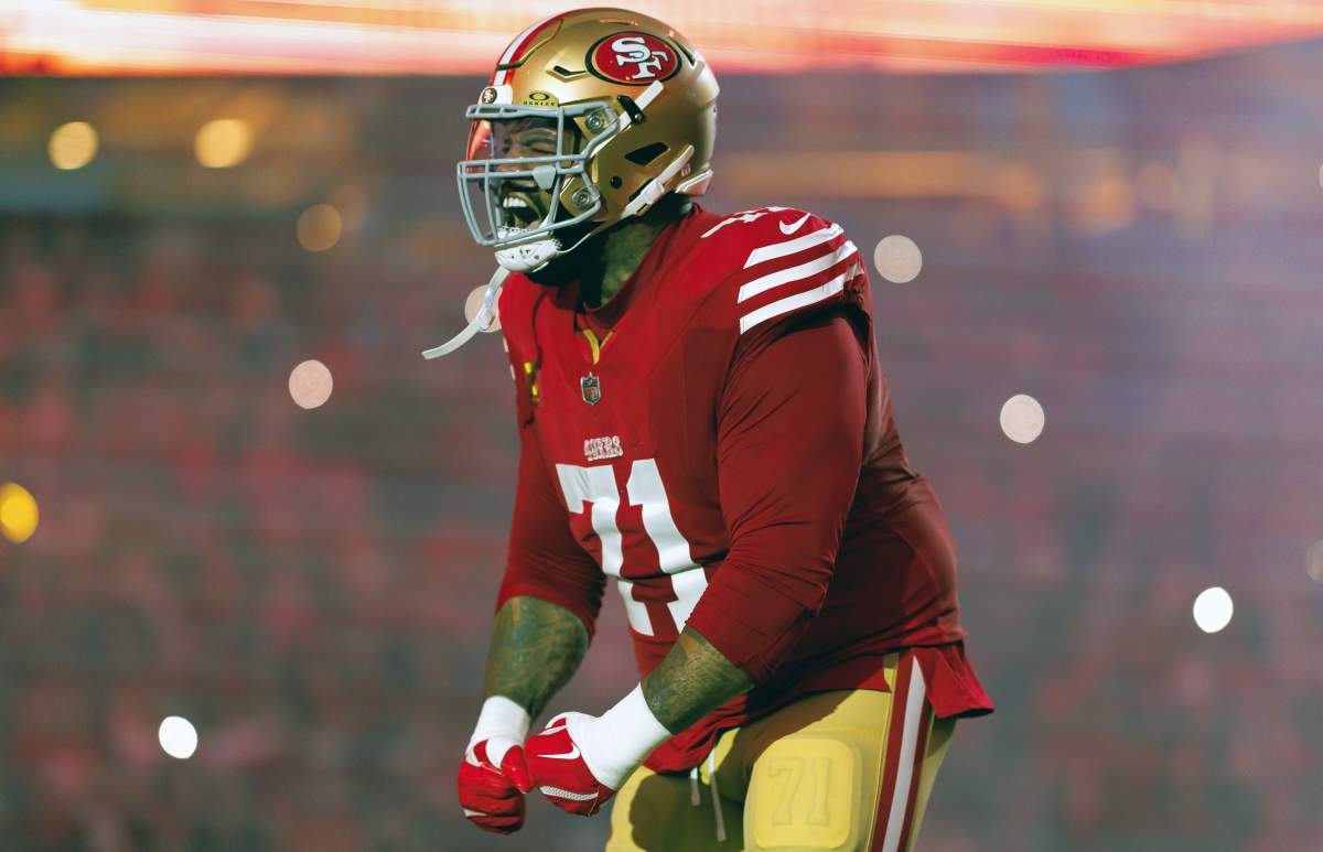 “Lomu started at left tackle during the past two seasons, allowing only three sacks (all in 2024). He plays with the agility and balance needed for the 49ers’ offensive scheme.”