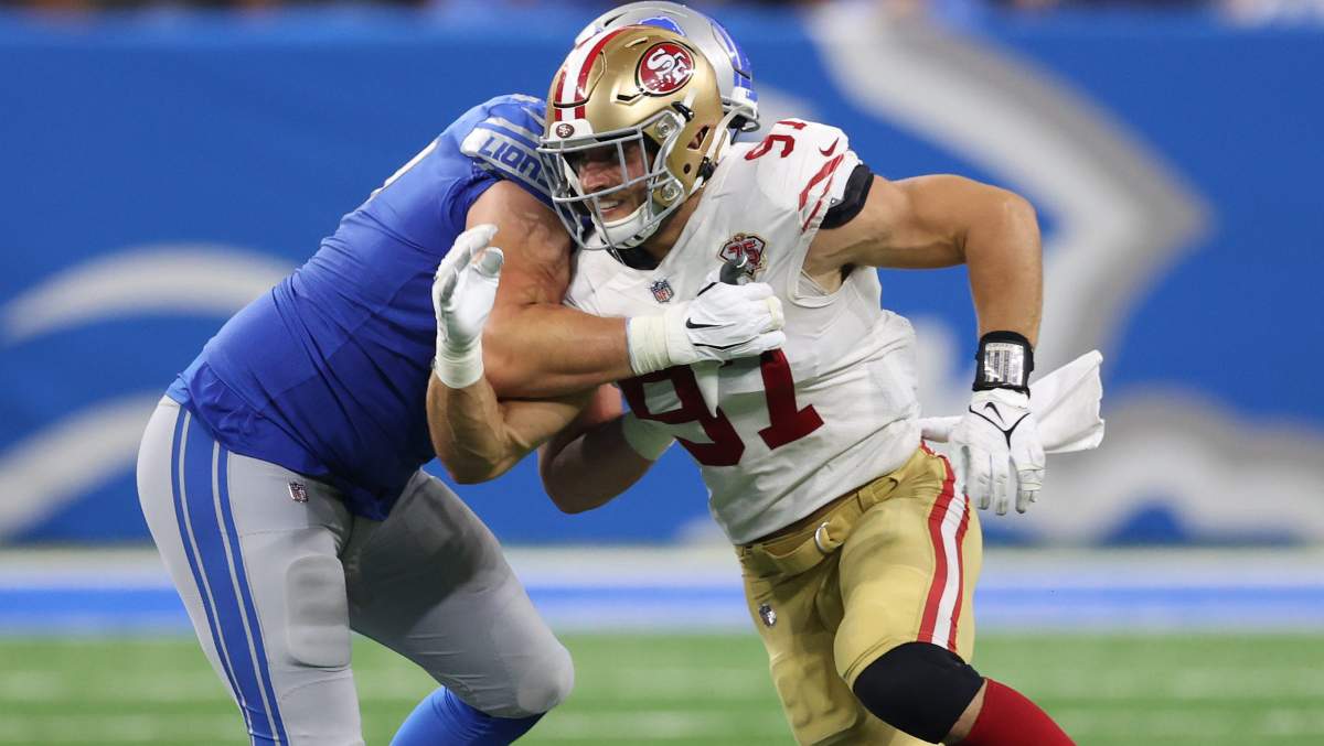 Edge rusher continues to be considered a pressing need for the 49ers. There’s still fans and those who cover the 49ers envisioning a scenario where the ‘Niners get added speed opposite of the All-Pro Bosa — even in an offseason that’s seen Kemoko Turay come on board via the Indianapolis Colts and Kerry Hyder return to the Bay after struggling with the Seattle Seahawks.