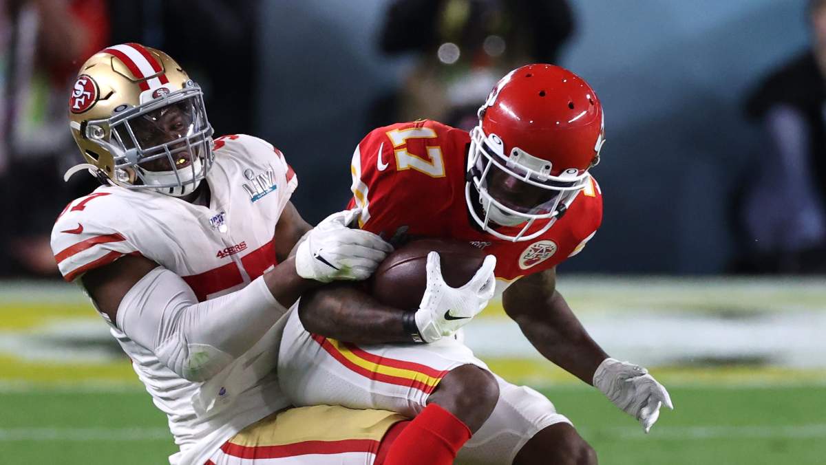 Hardman returned kicks and lined up as one of the WRs in Super Bowl 54 with the 49ers and his future head coach Robert Saleh on the other side. Hardman, then a rookie that season, took three kickoff returns for 58 yards and caught one pass for two yards in the 31-20 victory down in Miami.