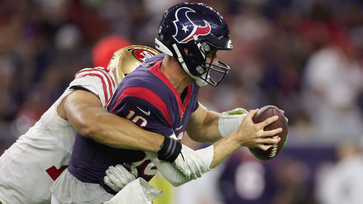 Two other defenders were waived: Undrafted rookie Kevin Atkins and veteran Alex Barrett. Atkins, who starred at Fresno State and was briefly joined by former college teammates Josh Hokit and KeeSean Johnson on the 49ers during minicamp and the early part of training camp, recorded one solo stop in the Texans loss. Barrett finished with four tackles including a solo one.