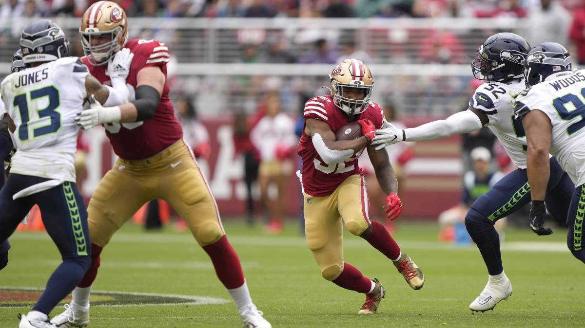 These are the kind of gains Shanahan’s zone-stretch rushing scheme manufactures for fun, but the 49ers haven’t seen gains of this type from Davis-Price. Instead, he mustered just 33 yards on 14 carries, averaging 2.4 per rush, in his only featured action against the Seattle Seahawks in Week 2.