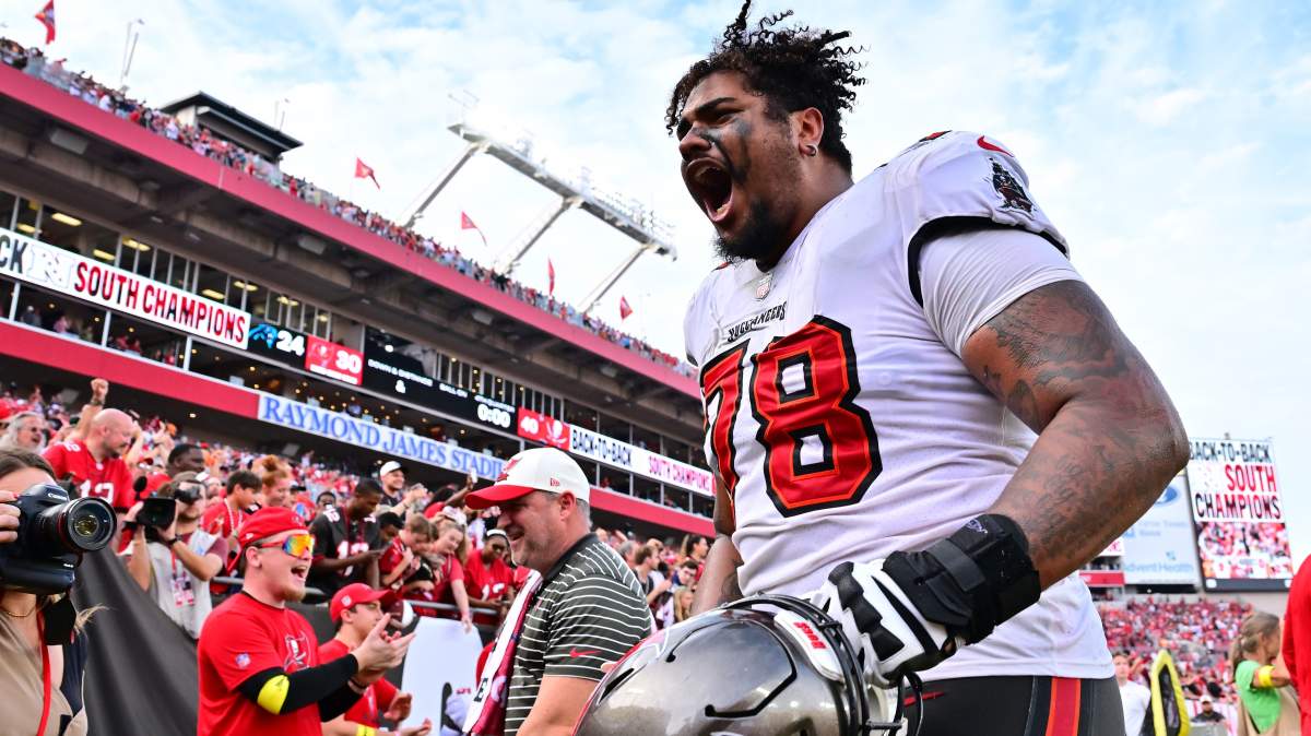 Hutchinson does present a special kind of problem. He moves around on the line so much and does not allow a particular lineman to get too used to his presence. Fortunately, the Bucs have a solid right tackle — Luke Goedeke — to pick him up on the other side.