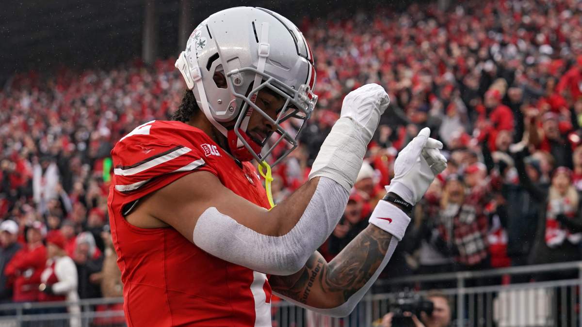 Egbuka, 6-foot-1 and 205 pounds, was a 4-time All-Big Ten selection — once at return specialist and 3 times at wide receiver — and capped his career with a College Football Playoff national championship following the 2024 season.