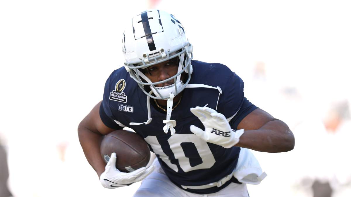 From NFL Draft Buzz: “From the moment he arrived in Happy Valley, Nicholas Singleton has been running angry. The thunderous back brought a rare blend of track speed and power-lifting strength that has defensive coordinators losing sleep. The 6’0″, 227-pound wrecking ball comes equipped with legitimate 4.39 speed and the raw power to squat 655 pounds — breaking Saquon Barkley’s program record.”