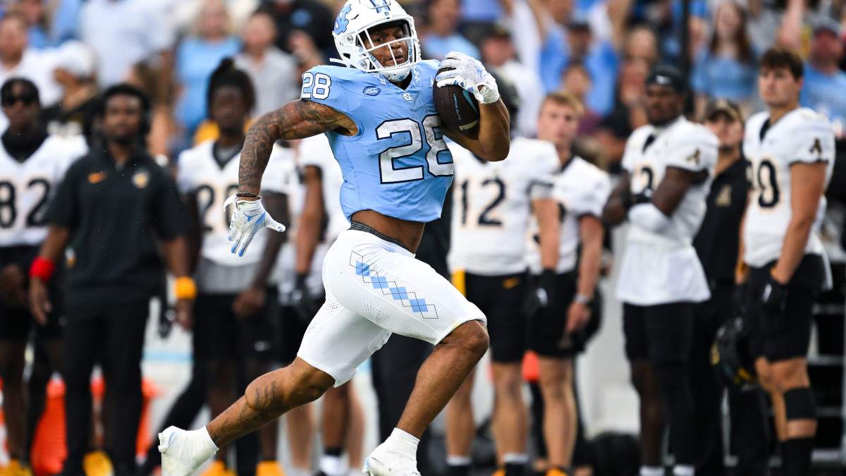 Hampton put up back-to-back All-American seasons in 2023 and 2024 for the Tar Heels. In 2024, he rushed for 1,660 yards and 15 touchdowns while averaging 5.9 yards per carry to go with 38 receptions for 373 yards and 2 touchdowns.