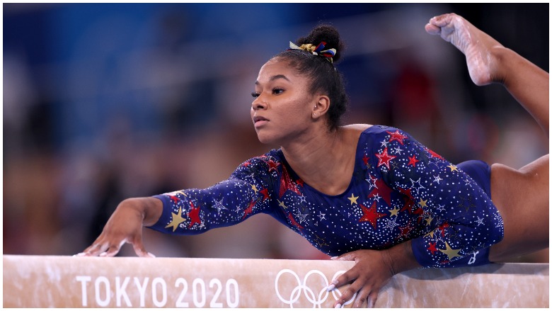 Getty Jordan Chiles of Team United States competes in floor exercise during the Women’s Team Final on day four of the Tokyo 2020 Olympic Games at Ariake Gymnastics Centre on July 27, 2021.