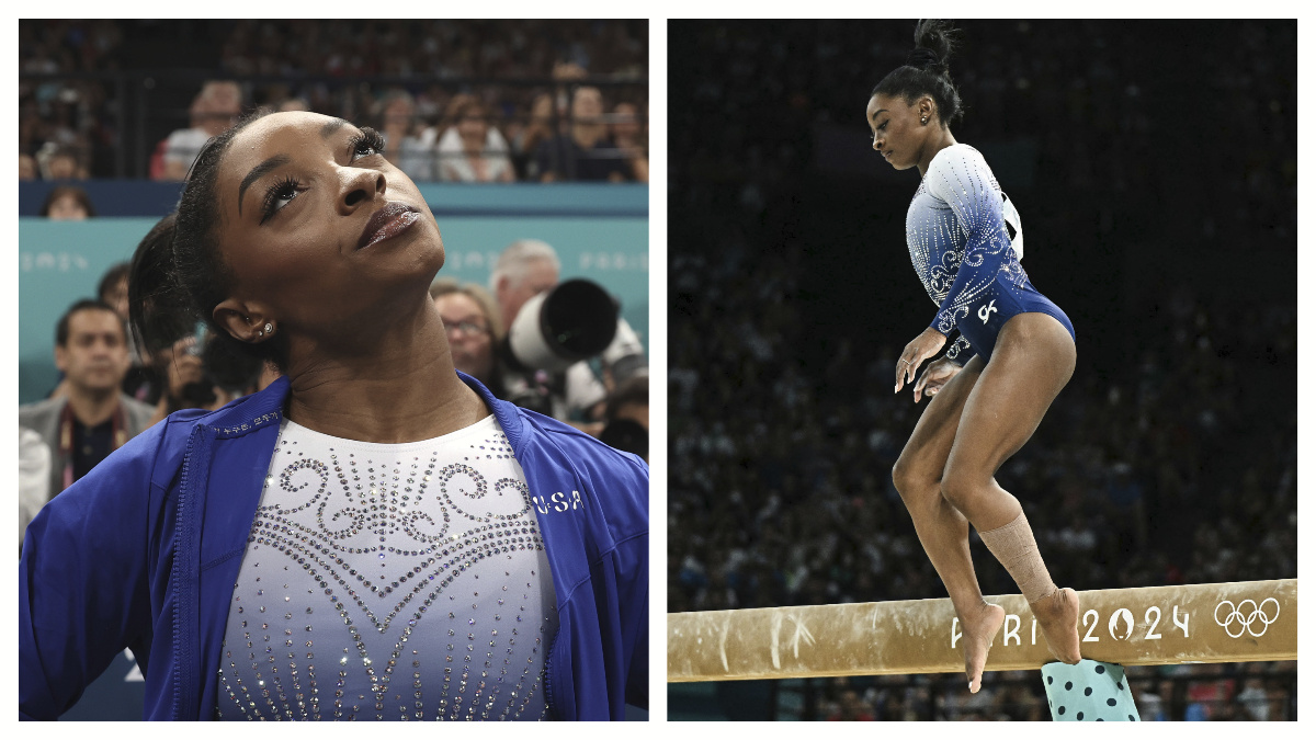Getty USA’s Simone Biles performs on the balance beam during the women’s all-around final of gymnastics competition at the Paris 2024 Olympic Games.