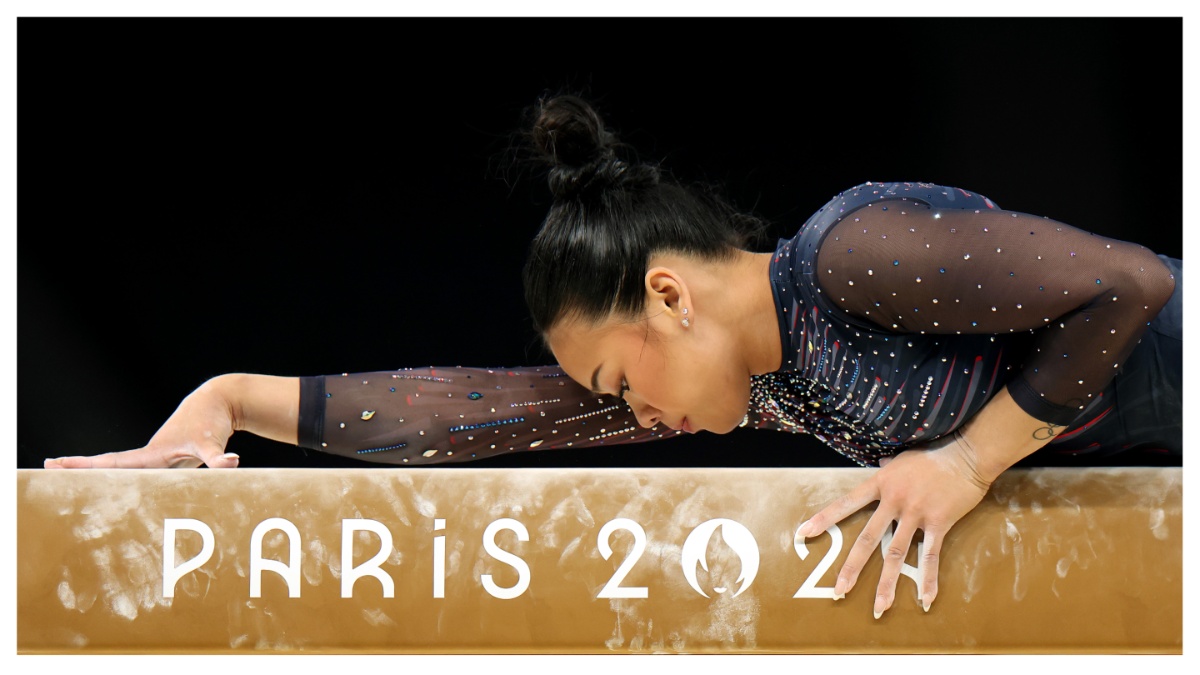 GettySunisa Lee of Team United States practices on the balance beam during a Gymnastics training session in the Bercy Arena ahead of the Paris 2024 Olympic Games on July 25, 2024.