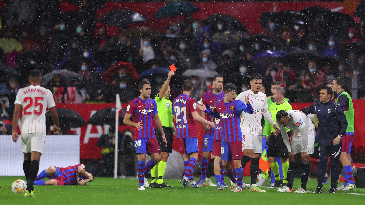 The Sevilla center-back was shown a straight red card for his actions, leaving the hosts to play the final 30 minutes of the match with just 10 men at the Ramon Sanchez-Pizjuan Stadium.