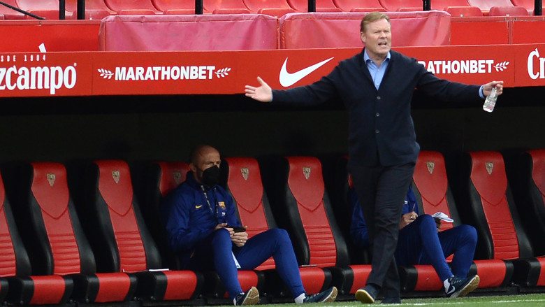 Barcelona coach Ronald Koeman was branded a “crybaby” by Sevilla director of football Monchi during Saturday’s La Liga clash between the two sides at the Ramon Sanchez Pizjuan Stadium.