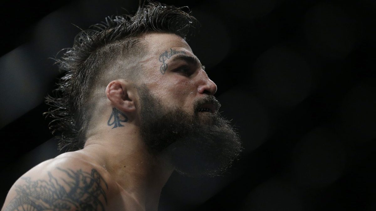 Mike Perry looks on during his welterweight bout against Alex Oliveira.