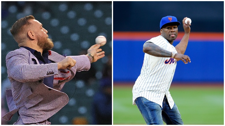 Watch both McGregor and 50 Cent’s first pitches below: