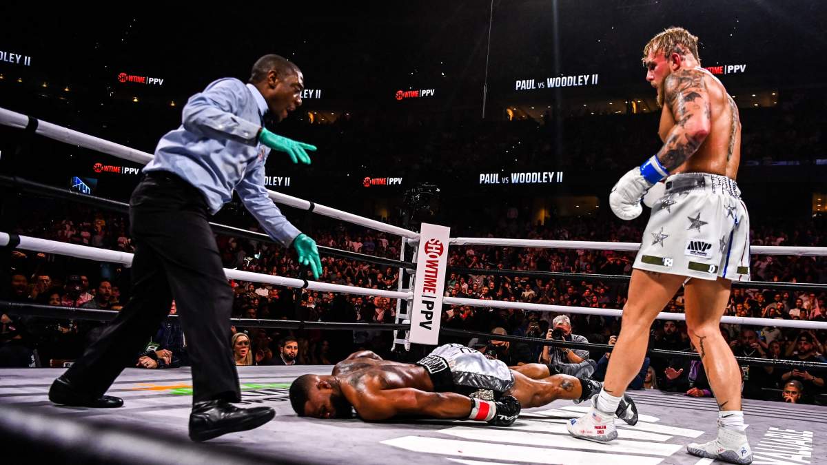 “Morning Kombat” co-host Brian Campbell tweeted: “Heck of a way for Jake Paul to finish off the fight and rivalry with Tyron Woodley.”