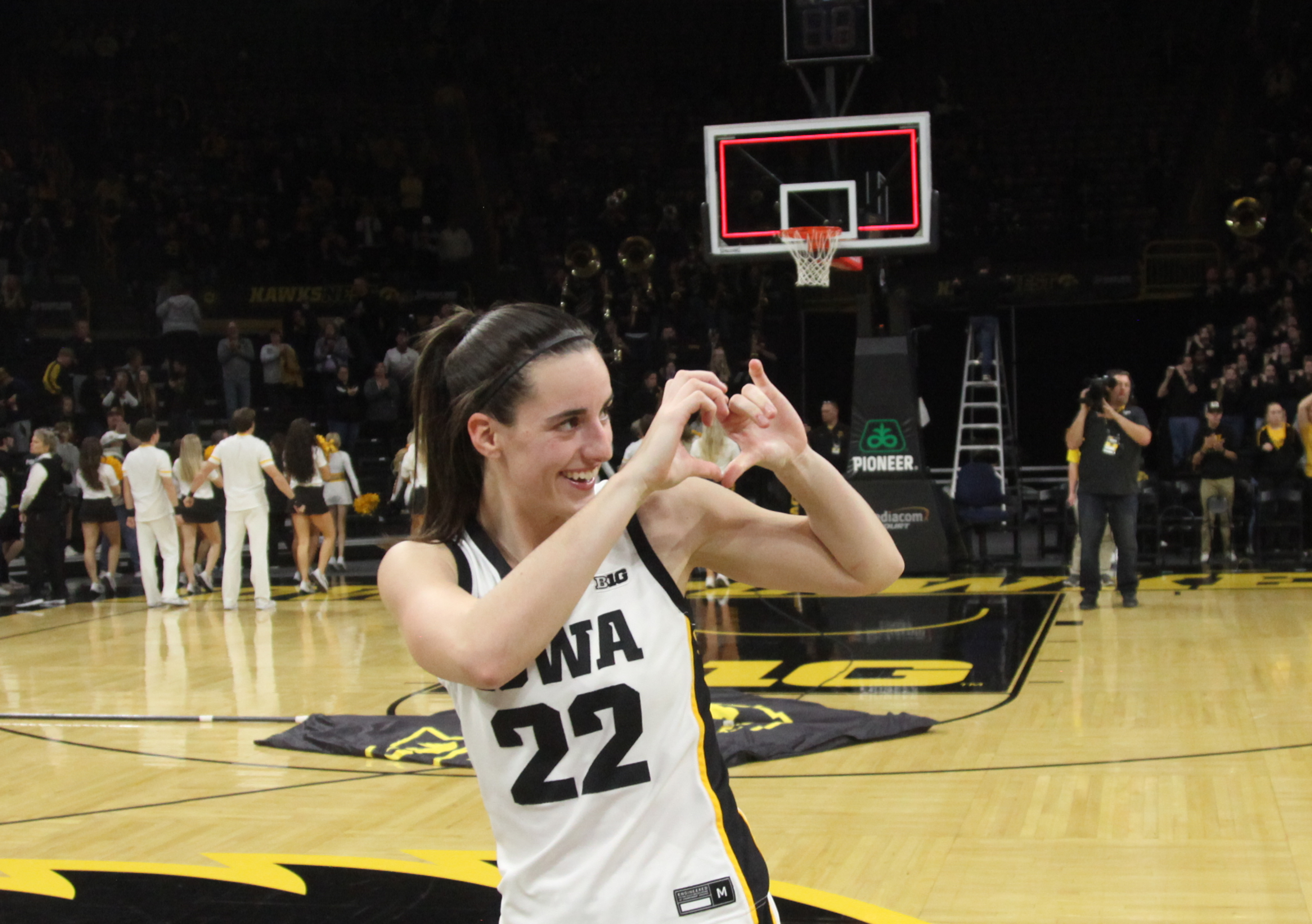 GettyGuard Caitlin Clark #22 of the Iowa Hawkeyes gestures to the crowd after the match-up against the Drake Bulldogs at Carver-Hawkeye Arena on November 19, 2023 in Iowa City, Iowa.